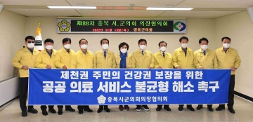 또한, 충북시군의회의장협의회는 「공공 의료 서비스 불균형 해소를 위한 제천권 공공의료 확충 촉구 결의문」을 채택하면서“정부는 지난 2019년 지역의료 강화대책을 발표하면서 공공의료시설이 없는 지역에 지역의료원 등을 신‧증축한다고 발표했다. 우리 충북지역의 제천권에는 공공의료기관 역할을 수행하는 책임의료기관이 없어 이러한 공공의료 혜택에서 완전히 소외돼 있다.”라며 충북의 열악한 공공의료 환경을 지적하며 제천권 공공 의료분야 확충을 강력히 촉구했다.