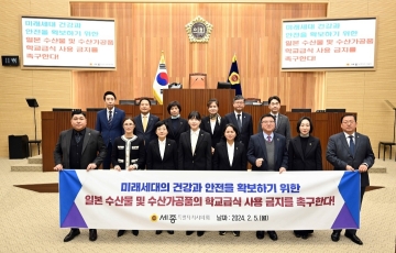 한편, 세종시의회는 ‘일본산 수산물 및 수산가공품의 학교급식 사용 금지 촉구 결의안’을 국회의장과 국무총리, 교육부, 해양수산부, 식품의약품안전처, 외교부 등에 이송할 예정이다.