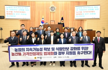 이에 세종시의회는 “농산물 가격안정제도 법제화를 조속히 추진하고, 국회는 관련 법안을 신속히 처리해 줄 것”을 촉구했다. 또한 각 지자체에서 시행 중인 농산물 가격안정제도를 적극 지원해 줄 것도 요청했다.