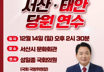 14일 일요일 오후 2시 30분, 서산문화회관에서 개최... 성일종 의원, 김은혜 의원 연사로 참여