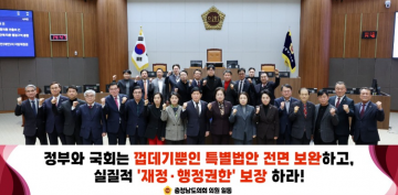 충남도의회가 현재 추진 중인 충남·대전 행정통합과 관련해, 통합특별시의 자립적 성장을 위한 재정권과 자치권이 결여된 특별법안을 강하게 비판하며 실질적인 권한 강화를 촉구하고 나섰다.