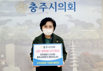 천명숙 충주시의회 의장이 1월 14일 자치분권 2.0시대를 응원하기 위해 ‘자치분권 기대해 챌린지’에 동참했다.