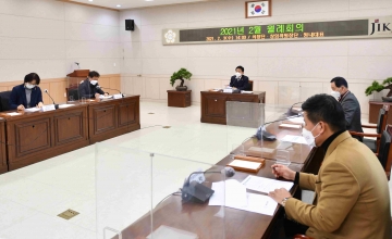 청주시의회(최충진 의장)는 3일(수) 특별위원회의실에서 의장단, 상임위원장단, 원내대표가 참석한 가운데 의회의 주요 현안 및 협의사항을 논의하는 「2021년 2월 의장단 월례회의」를 개최했다.